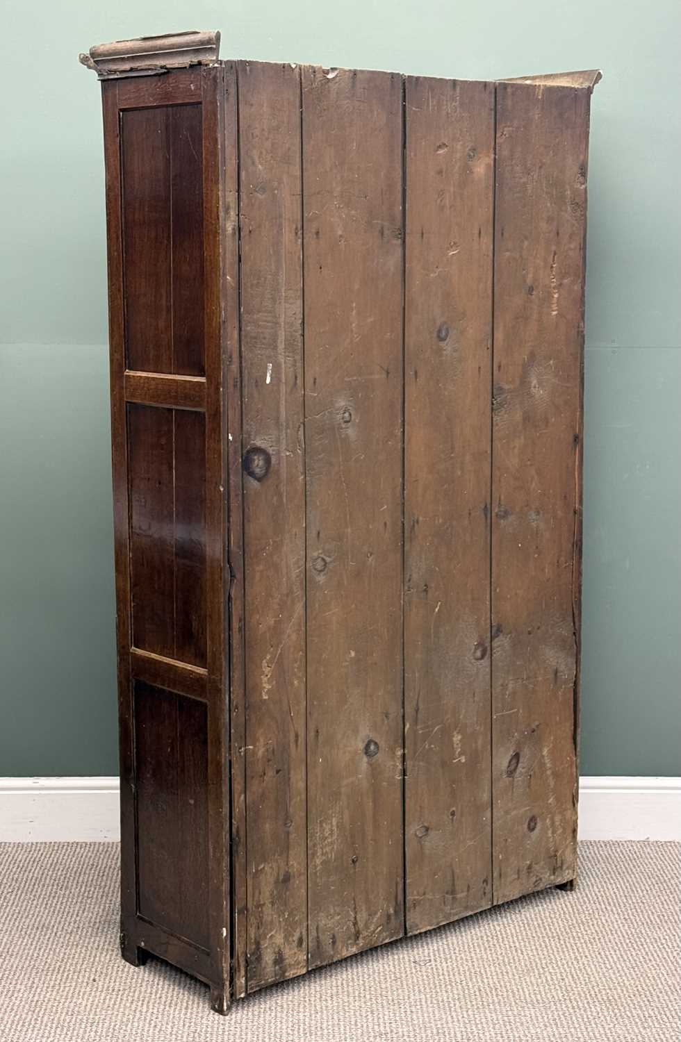 18TH CENTURY JOINED OAK DEUDDARN, upper section with three cupboards having arched fielded panel