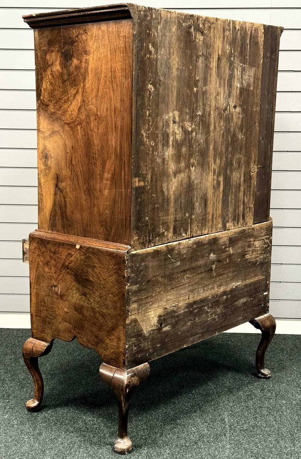 QUEEN ANNE WALNUT CHEST ON STAND, upper section having three short and two long drawers, stand