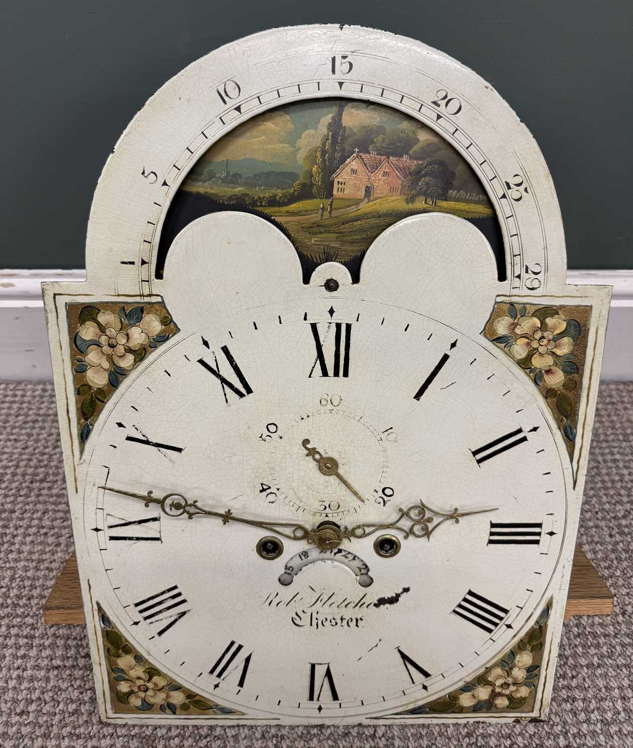 ROB FLETCHER OF CHESTER LONGCASE CLOCK, rolling dial, twin weights and pendulum