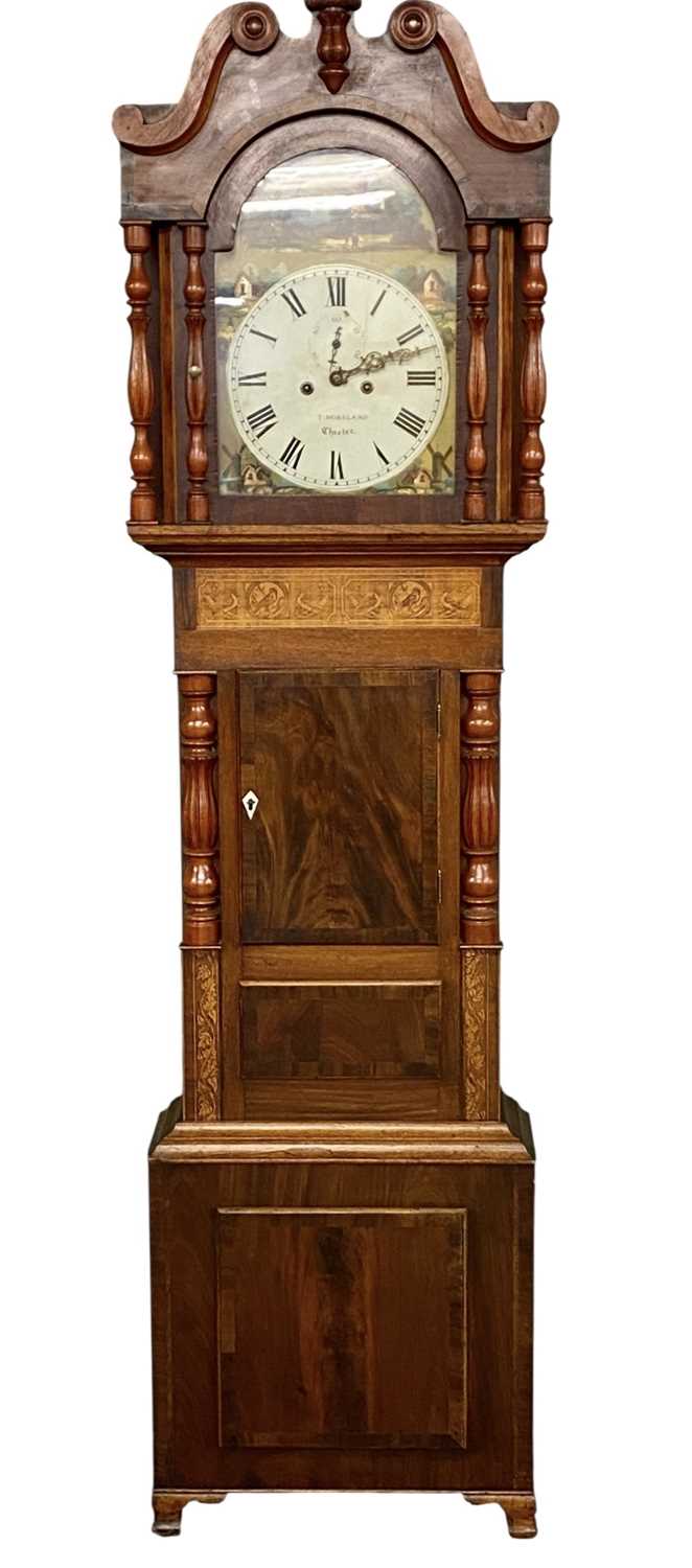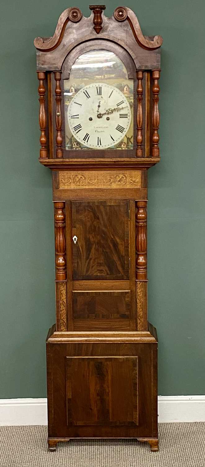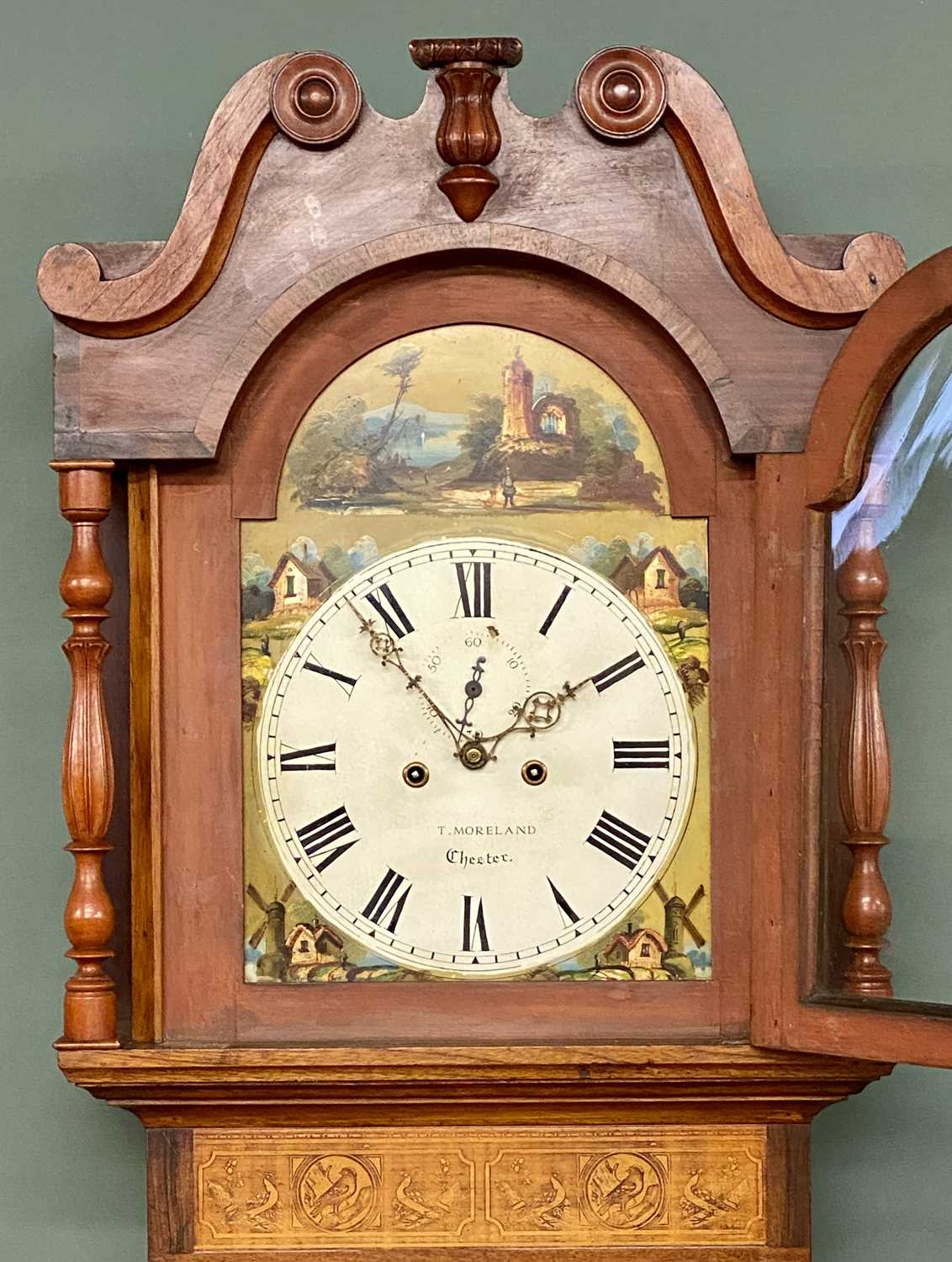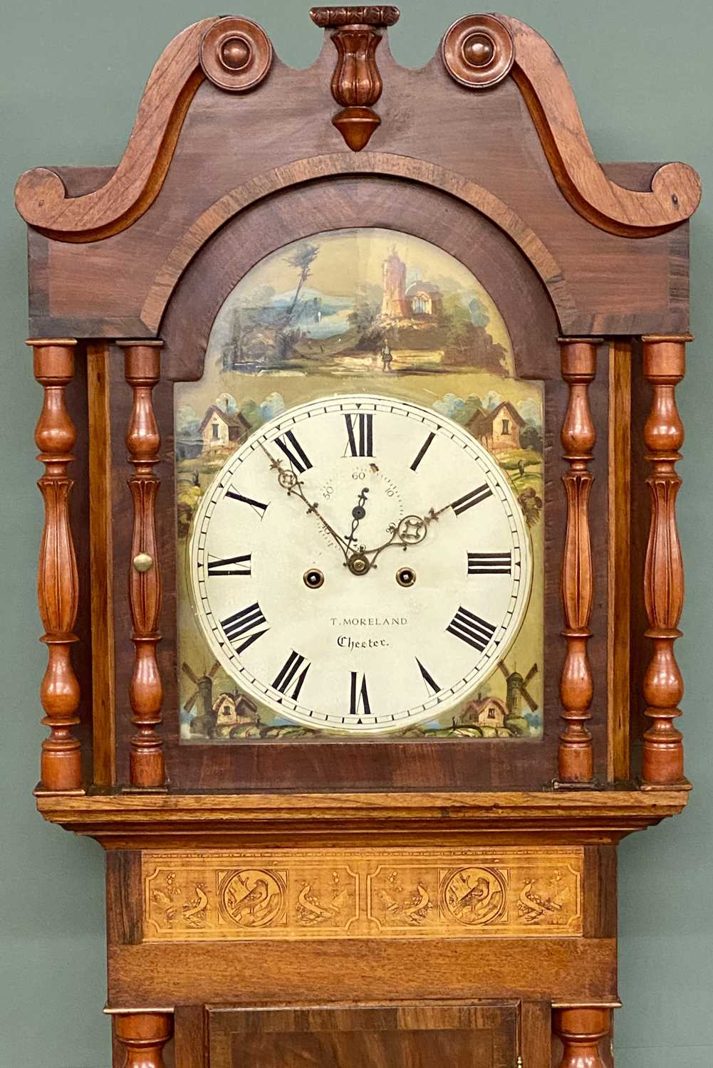 T. MORELAND OF CHESTER VICTORIAN LONGCASE CLOCK, mahogany case with fine inlaid detail, painted