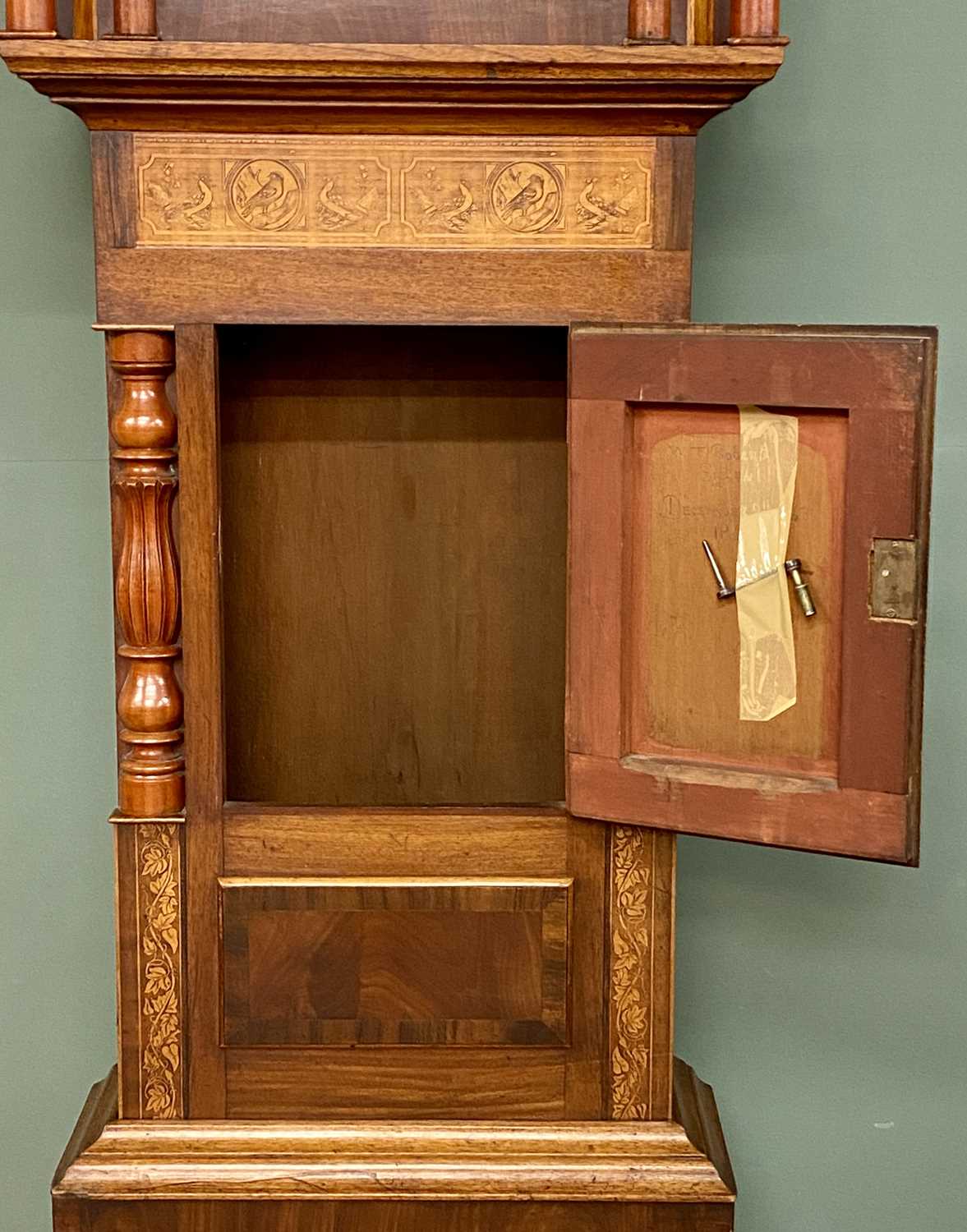 T. MORELAND OF CHESTER VICTORIAN LONGCASE CLOCK, mahogany case with fine inlaid detail, painted dial, with 8-day movement (no pendulum or weights), 231 (h) x 60 (w) x 24cms (d)